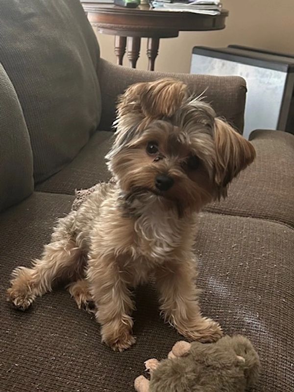 Cadbury, a beautiful little male Yorkie from a great kennel in Missouri. He weighs 3.5lbs and is 7 " at the shoulder. We will begin breeding him later this year.